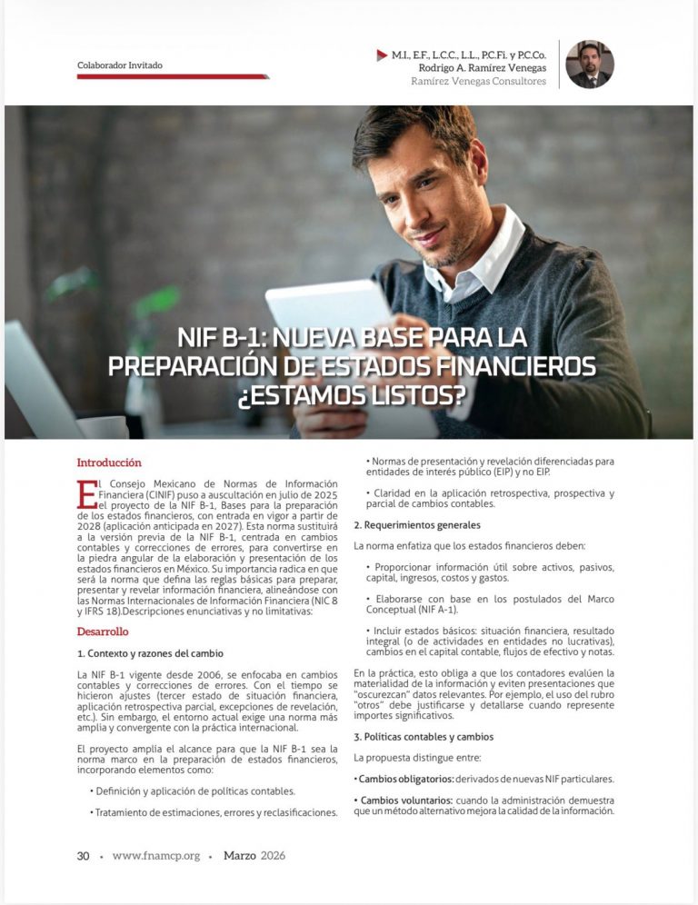 El Consejo Mexicano de Normas de Información Financiera (CINIF) presentó el Proyecto de Mejoras a…